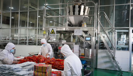 炒制牛肉制品的組合烘干箱、給袋式真空包裝機(jī)、機(jī)器人碼垛機(jī)等一系列具有開創(chuàng)性的設(shè)備